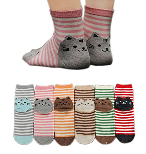 This item: AnVei-Nao Womens Girls Stripe Cute Cat Cotton Soft Pattern Crew Socks 6 Pairs$14.99