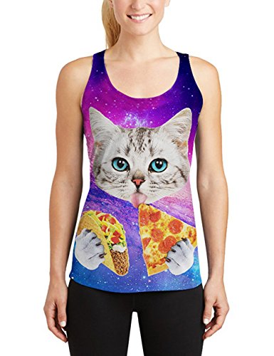 This item: Leapparel Women's Nebula Space Pizza Cat Print Hipster Novelty Yoga Fitness Racerback Shirt Tank Top$8.99