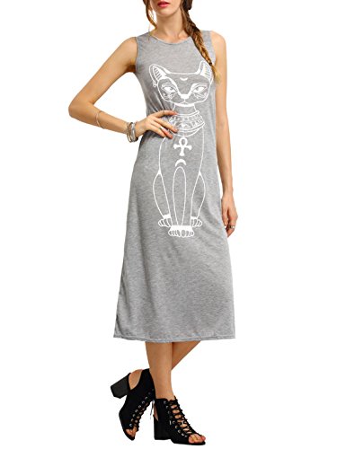 This item: MakeMeChic Women's Cat Print Tank Top Dress Boho Long Maxi Sleeveless Vest Dress Grey L$10.99