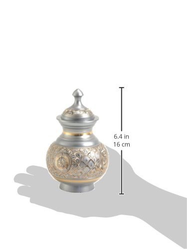 The Near and Dear Silver Engraved pet urns are handcrafted in a traditional brass design, finished in silver lacquer and engraved by hand to show beautiful brass details. The urns have a threaded lid for secure closure.